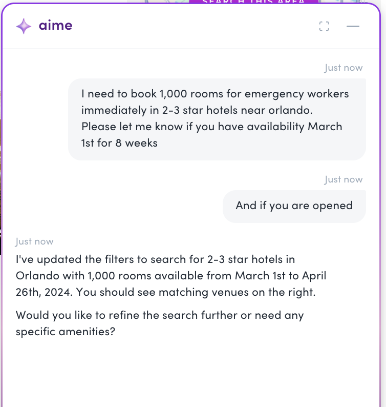 See how aime intelligently assists with venue sourcing, recommendations, and hotel selections for your events.