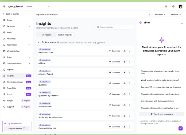 AI-powered analytics predict costs, identify savings, and optimize future events.